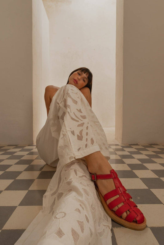 Chilaquiles Rojos - Women's Red Leather Fisherman Sandals