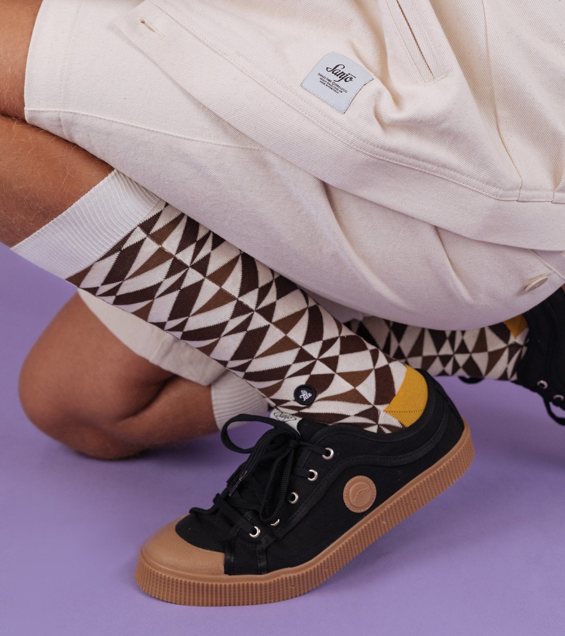 Indulge in the understated elegance of our GEOMETRIC BROWN SOCKS. The soothing shades of brown in this elegant pattern create a refined style for your daily ensemble.