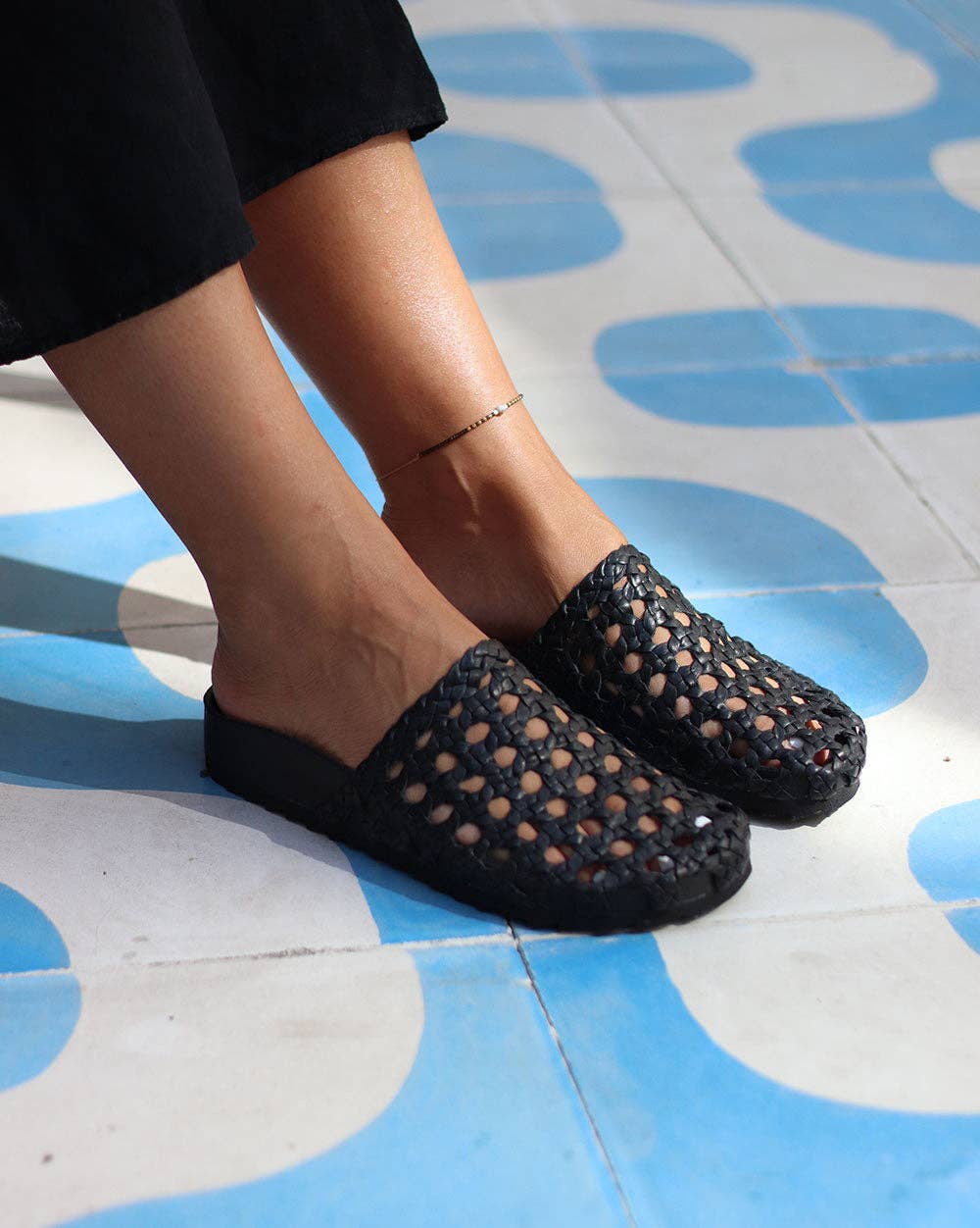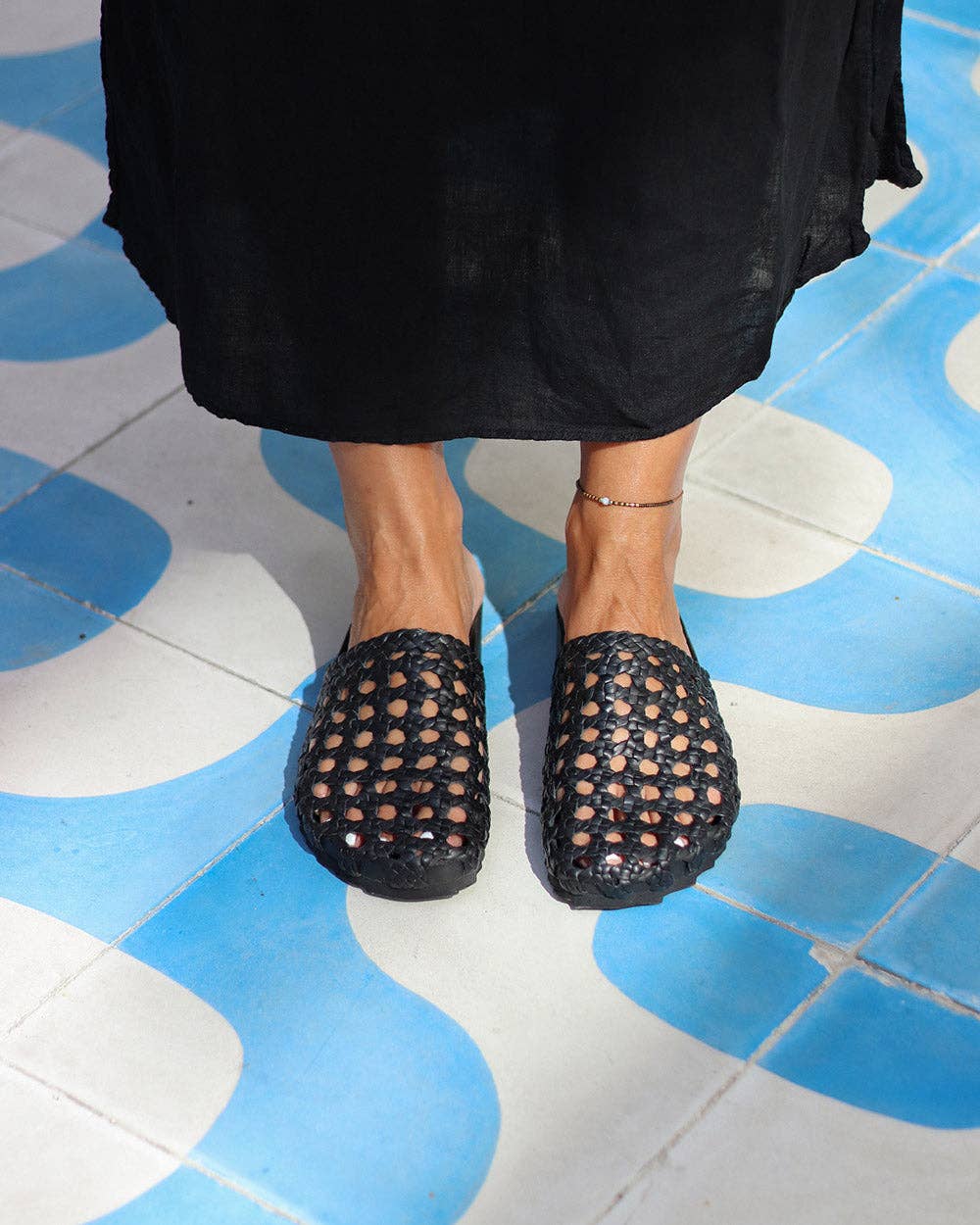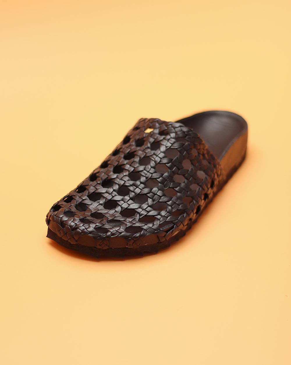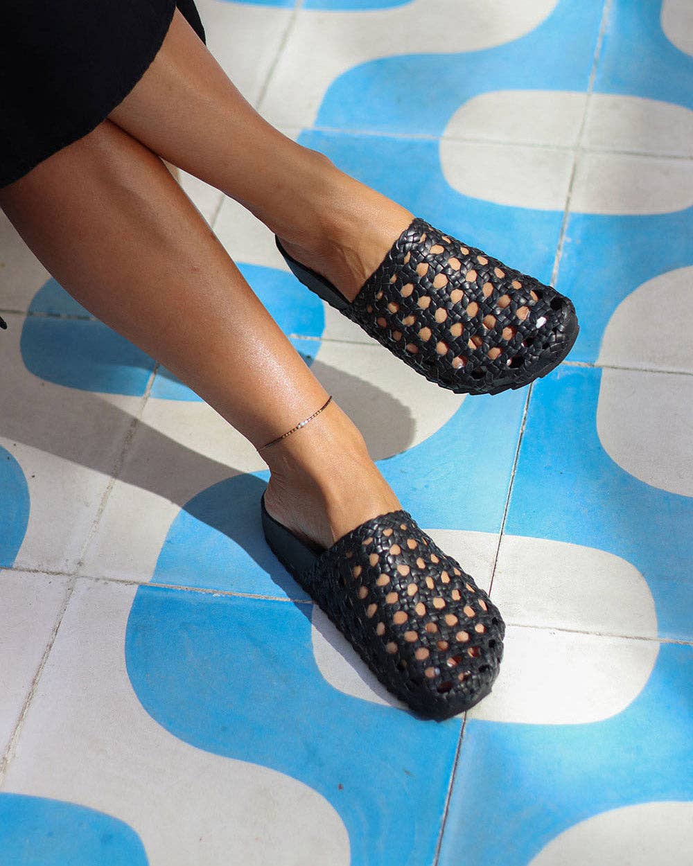 Jalisco - Woven Black Leather Mule with Bio Sole