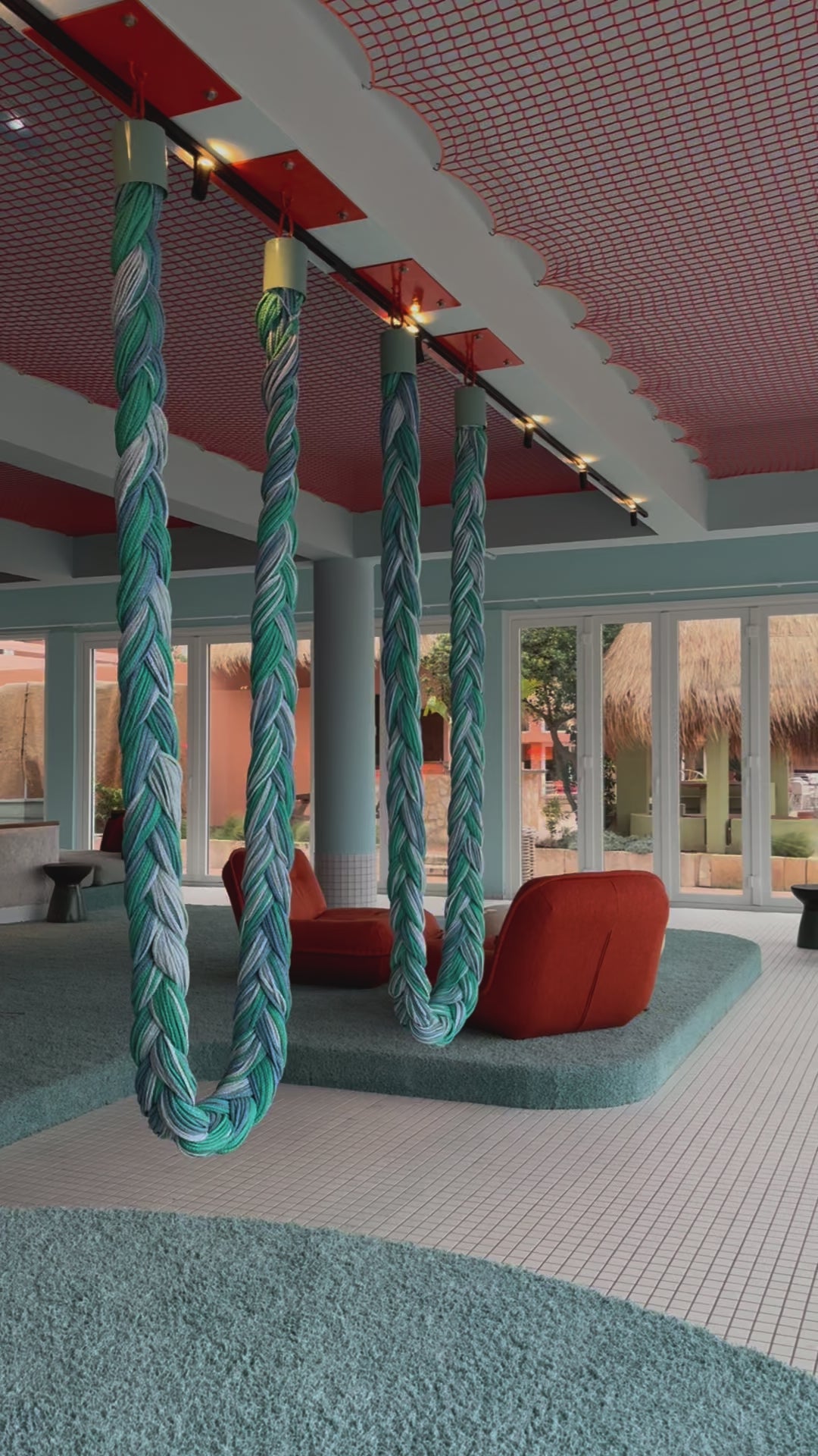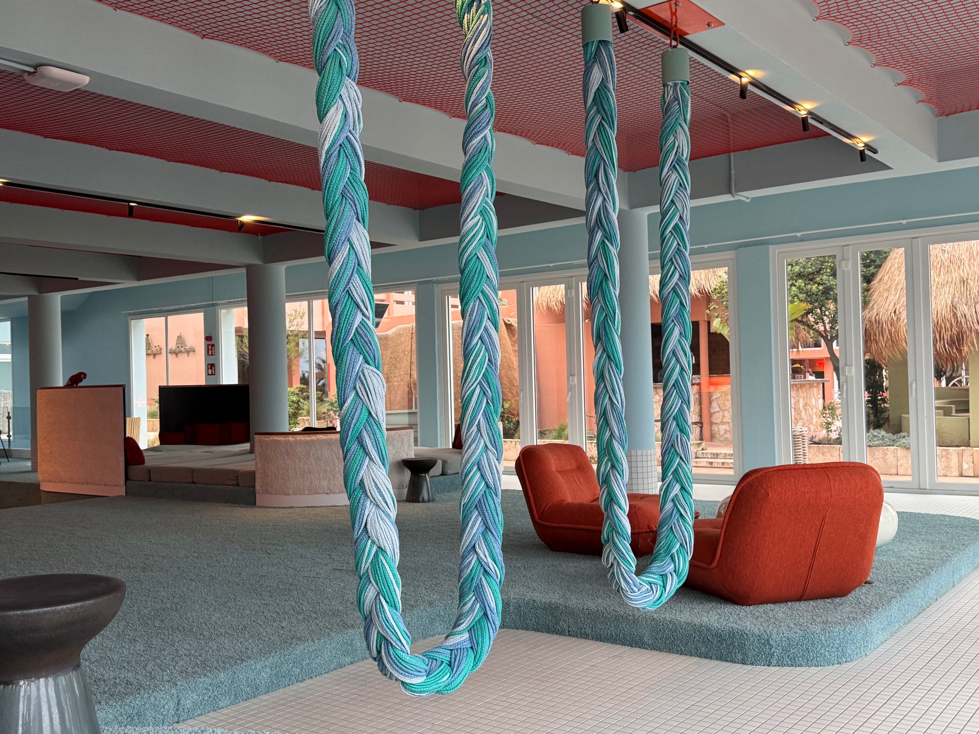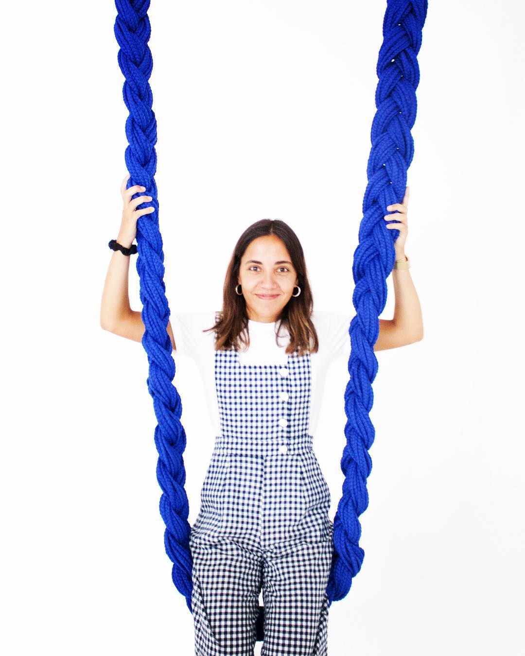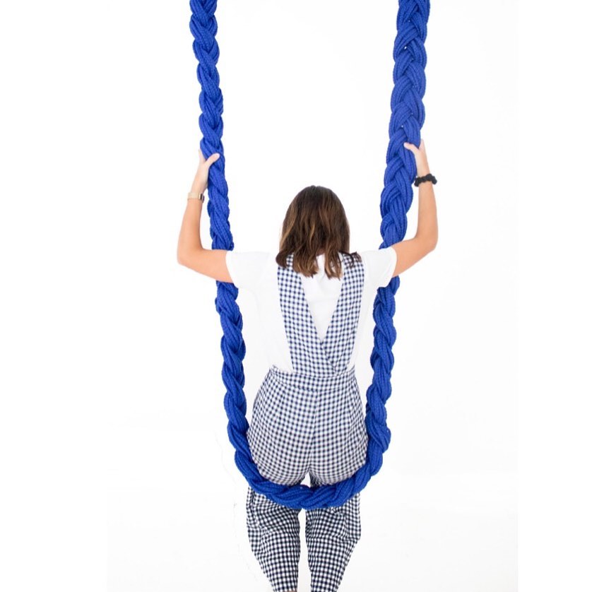 - Upcycled textile braid. Stainless Steel holding cups.