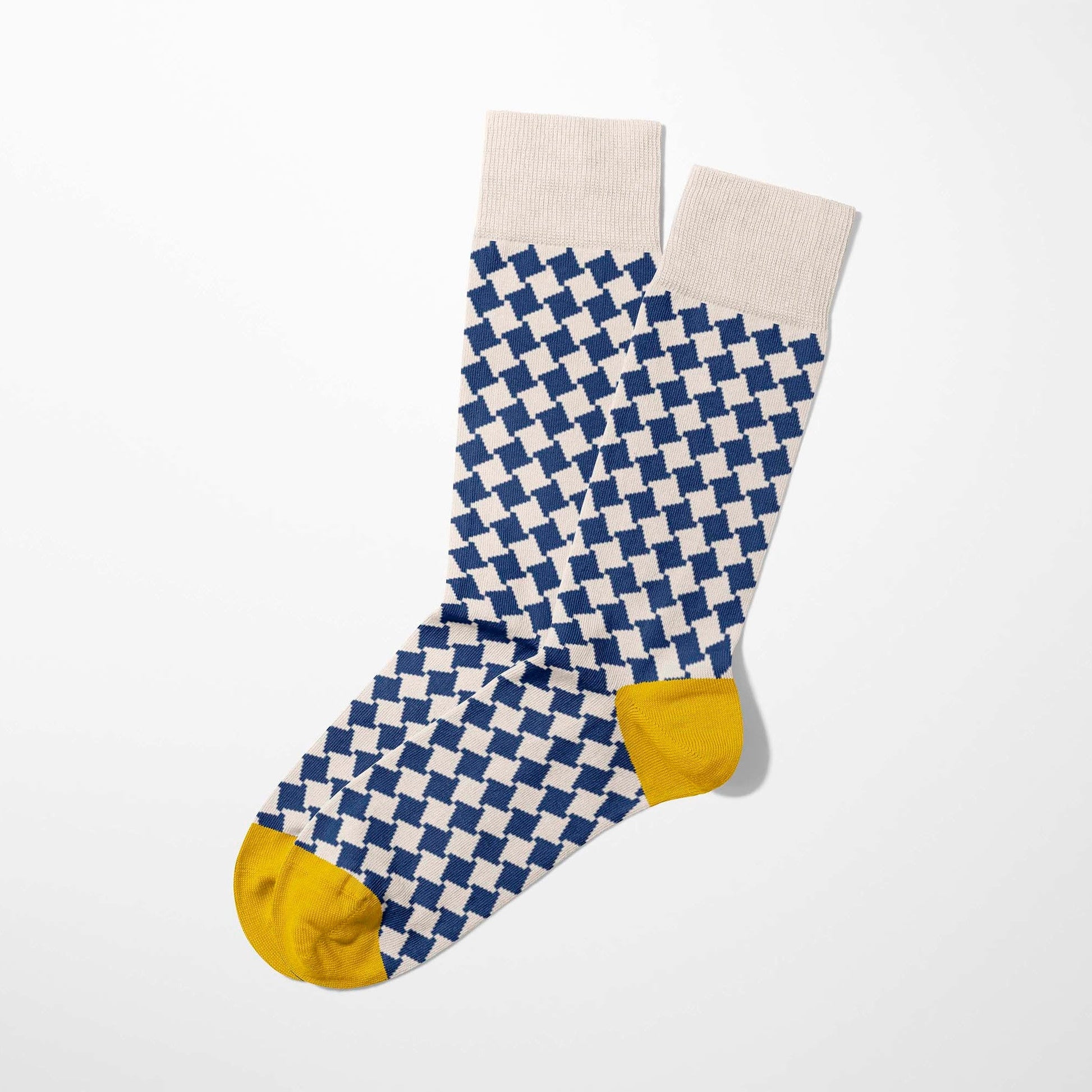 As one of the most iconic patterns from the 50’s, PIED DE POULE SOCKS are a must-have for classic design aficionados. With their distinctive four-pointed blue shapes, this timeless pattern exudes elegance and sophistication for any occasion, so make sure you make room for them in your drawer.