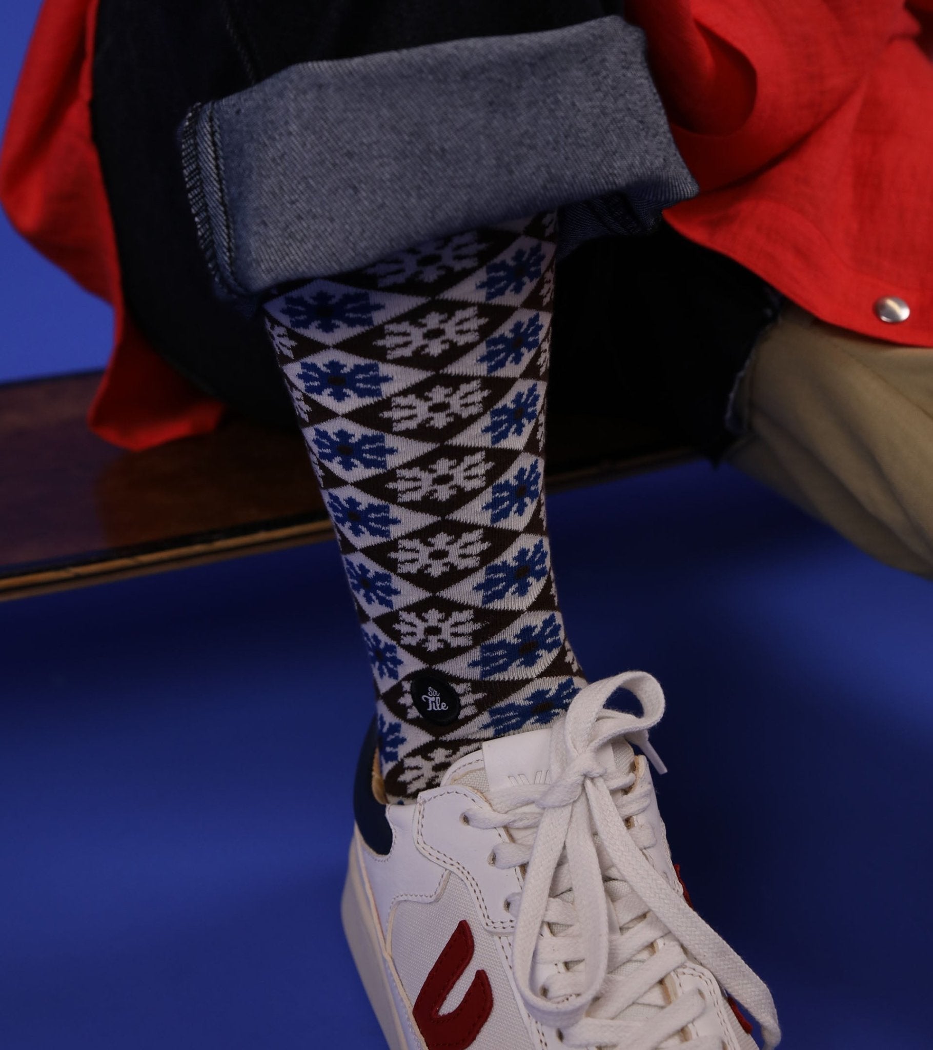 The charming combination of brown and blue in our STYLIZED FLORAL SOCKS creates a unique and versatile effect that effortlessly complements your everyday wear.